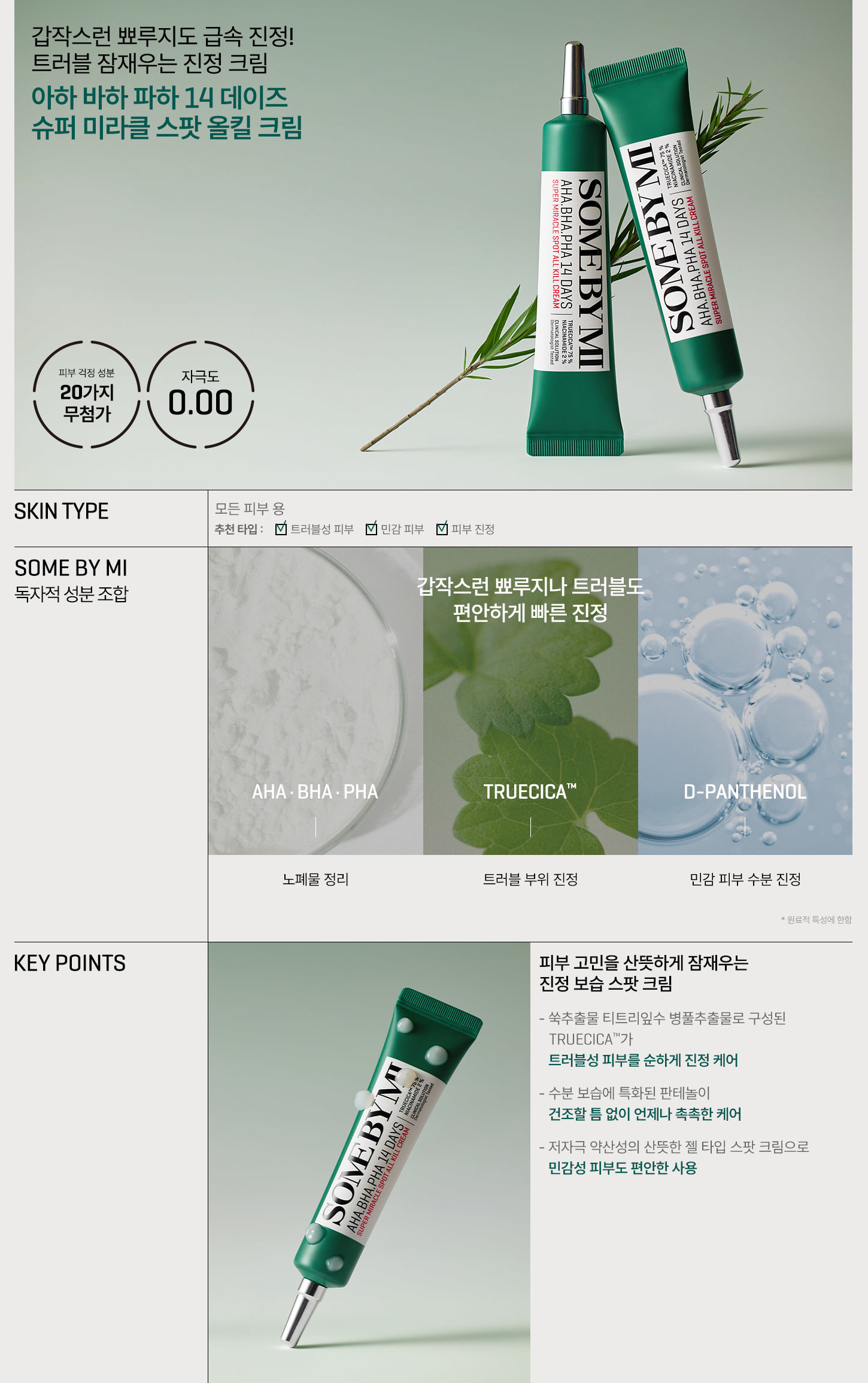 Infused with the power of TRUECICA™, along with specialized moisturizing ingredients like Panthenol, and designed with a gentle, gel formula, the AHA BHA PHA 14 Days Super Miracle Spot All Kill Cream is your go-to for maintaining moist, calm, and comfortable skin, even for those with sensitive skin types.