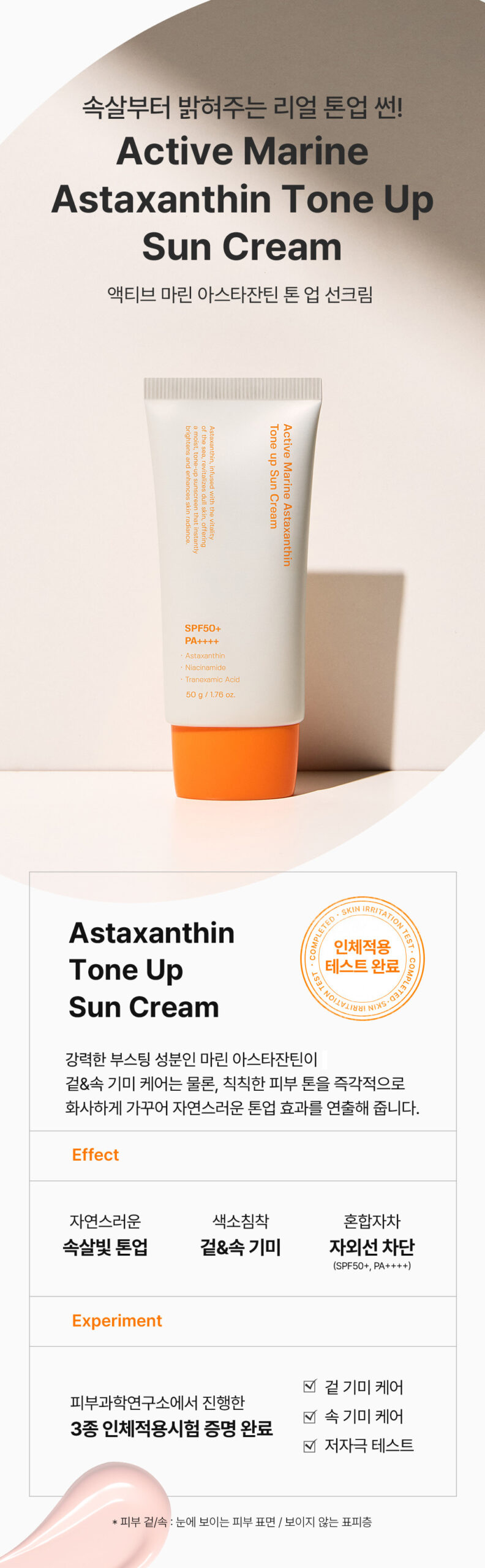Elevate your skincare routine with Active Marine Astaxanthin Tone-Up Sun Cream—where powerful marine science meets effortless tone-up beauty.