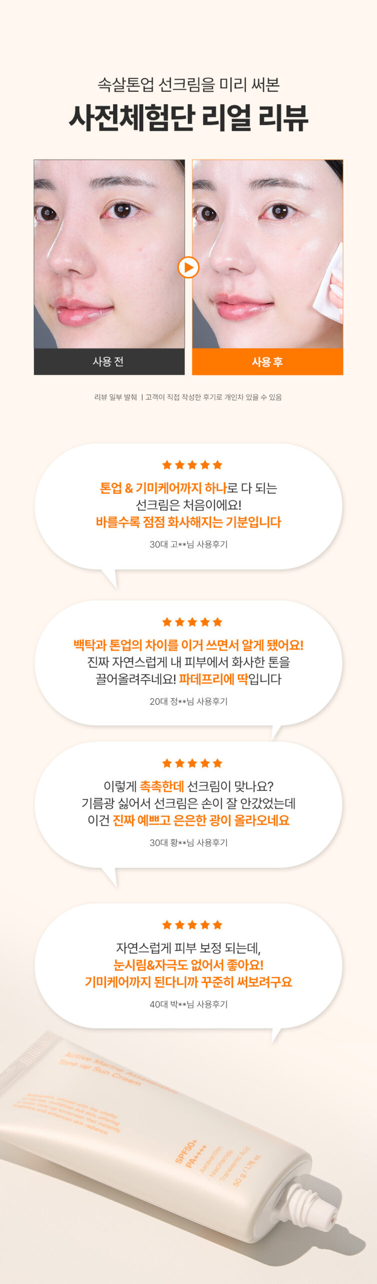 10 reviews for SUNGBOON EDITOR Active Marine Astaxanthin Tone-up Sun Cream SPF50+ PA++++ 50g