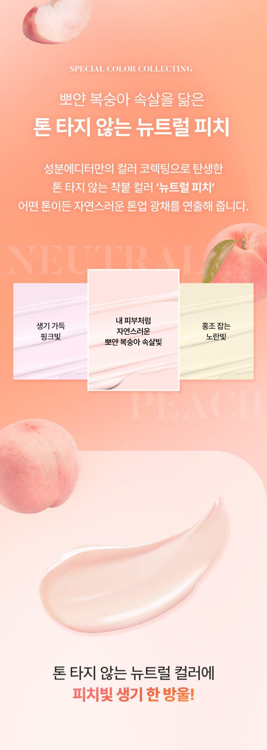 Color-Correcting Neutral Peach: Universally flattering tone-up color that blends effortlessly with any skin tone.
