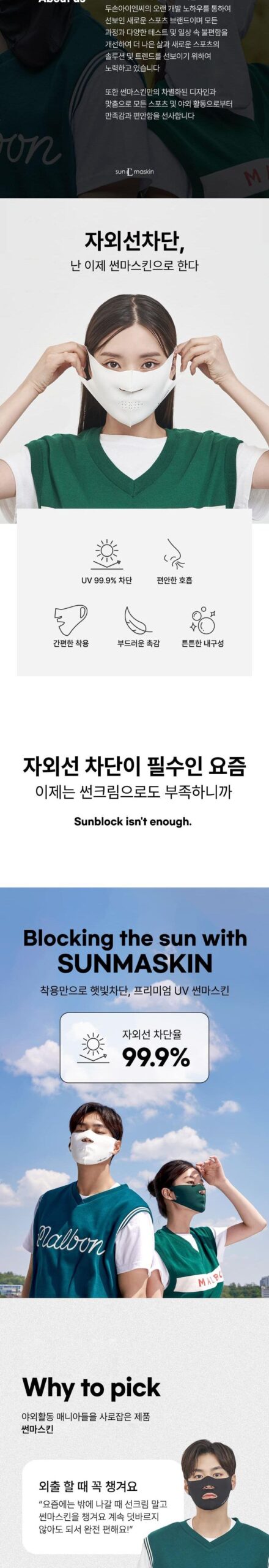 SUNMASKIN Premium UV Protection Sports Golf Fishing Mountain Climbing Bicycle Tennis Outdoor Activities Mask Open Style MADE IN KOREA