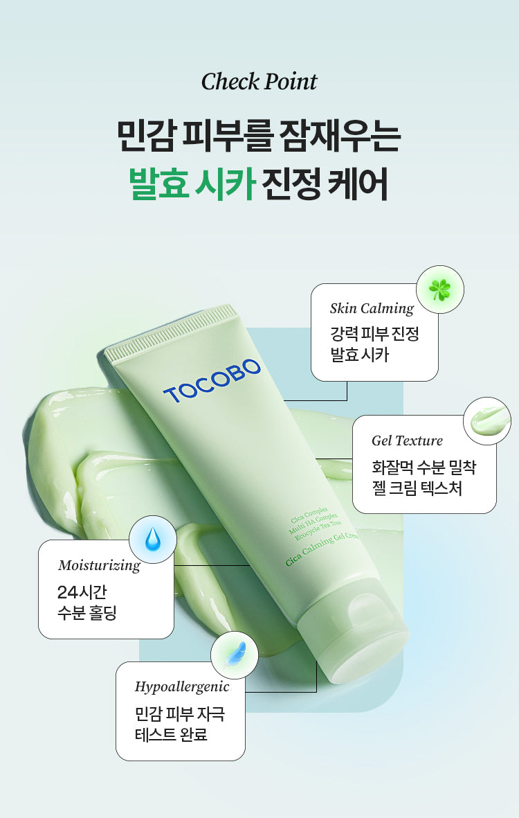 Experience rapid relief and hydration with the TOCOBO Cica Calming Gel Cream, a must-have for sensitive skin. This soothing, moisture-rich cream delivers a calming effect within just 3 seconds, making it an ideal solution for heated, irritated skin.