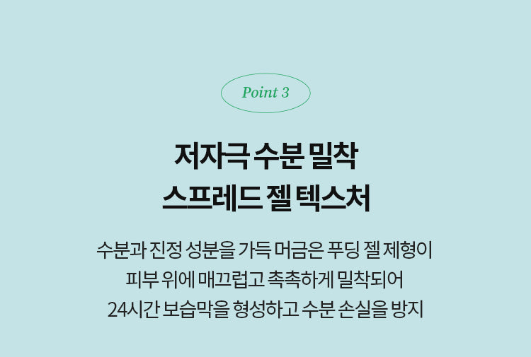 - Moisture Barrier Formation: The unique pudding gel texture creates a smooth, moisture-filled layer on the skin, preventing moisture loss and maintaining hydration.