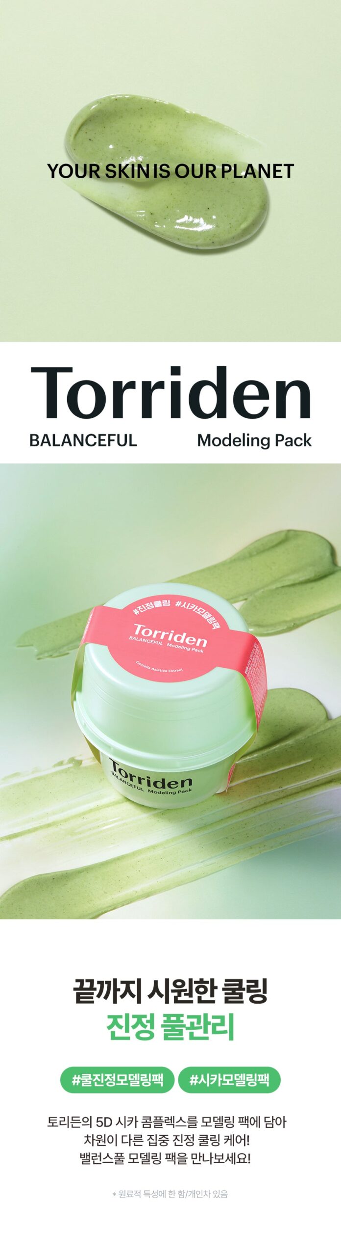 Experience a new level of intensive cooling and soothing with our Soothing Pool Care Modeling Pack, featuring Toriden’s innovative 5D Cica Complex. Designed for those with sensitive or heat-prone skin, this modeling pack offers an advanced solution for cooling care and effective ingredient absorption.