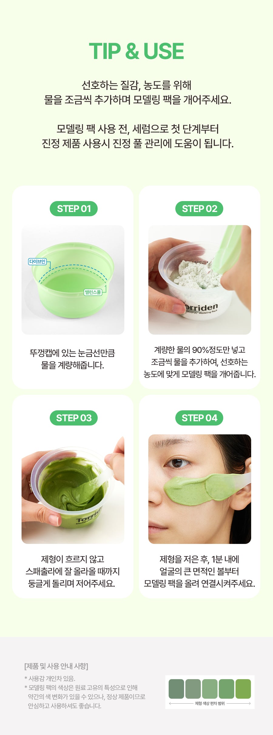 - Application: Quickly apply the modeling pack to your face, starting with the cheeks and spreading to the largest areas, ensuring to connect the application within 1 minute for optimal adhesion.