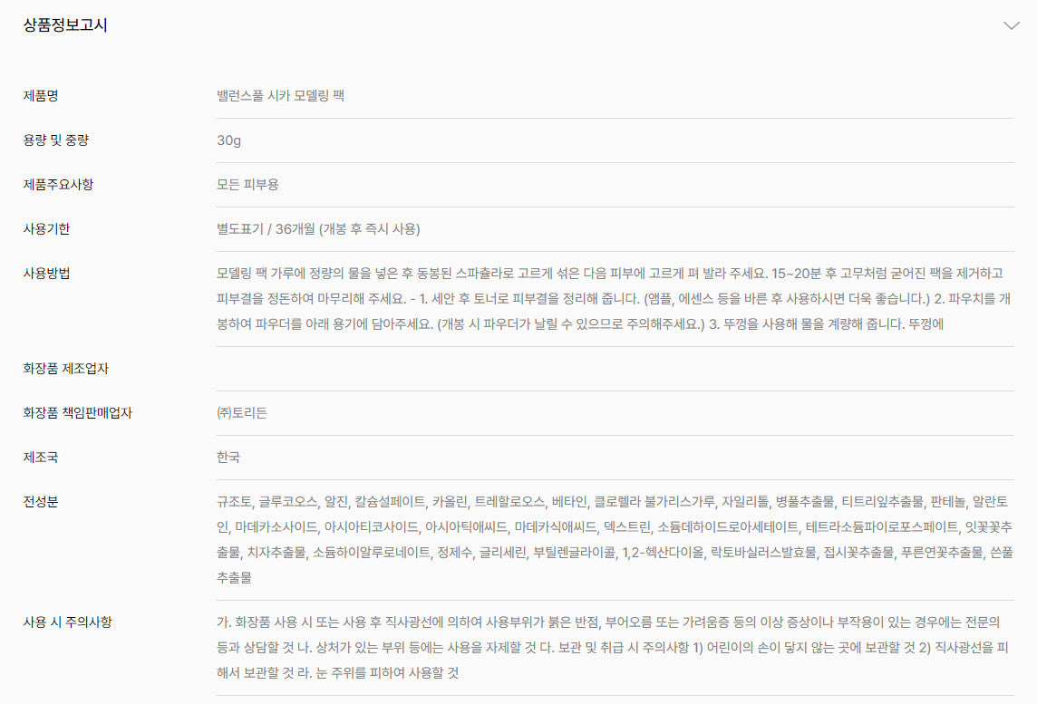 Torriden Balanceful Cica Modeling Pack 30g