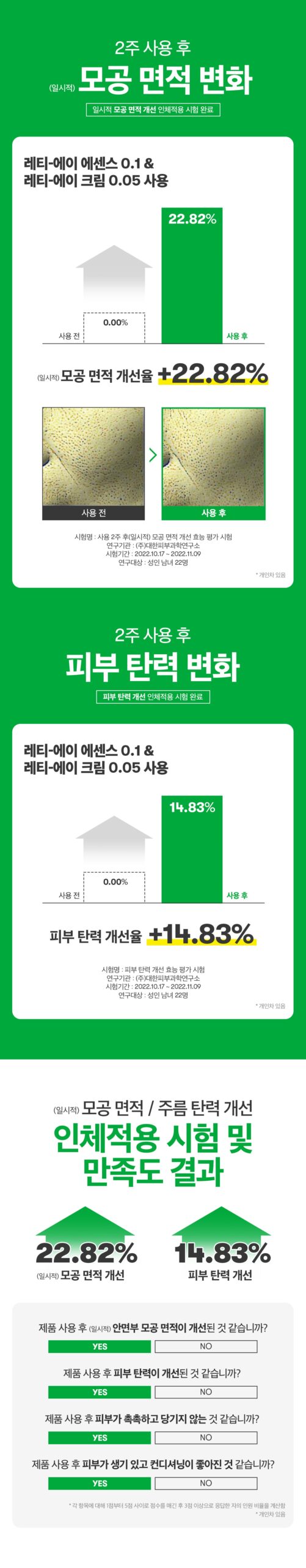- Effective After Just 2 Weeks: Clinically proven to improve pores by 22.82% and elasticity by 14.83% within just two weeks of use.
