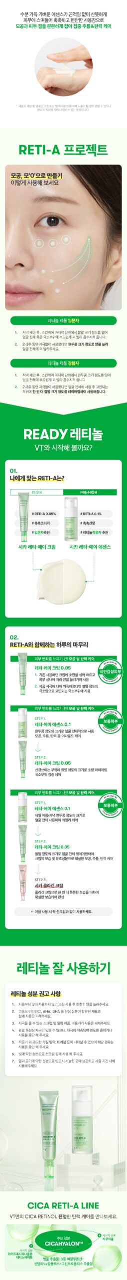 - Cica Reti-A Essence 0.5: Designed for addressing skin texture and elasticity loss.