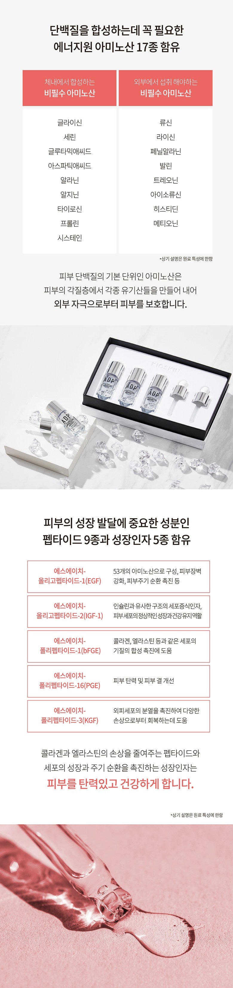 The human-derived super peptide ADP contained in the ampoule provides total care for skin concerns such as loss of elasticity and thinning.