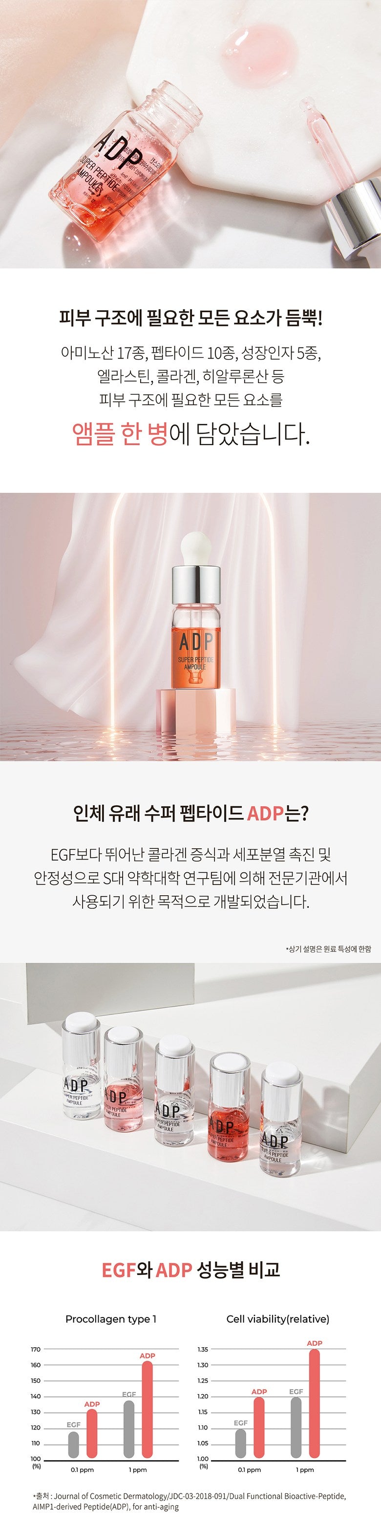 The human-derived super peptide ADP contained in the ampoule provides total care for skin concerns such as loss of elasticity and thinning.