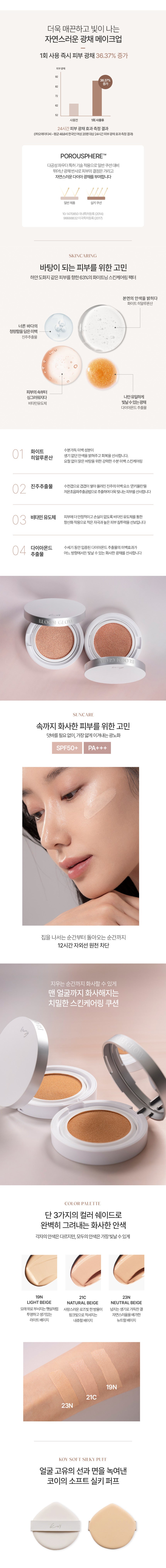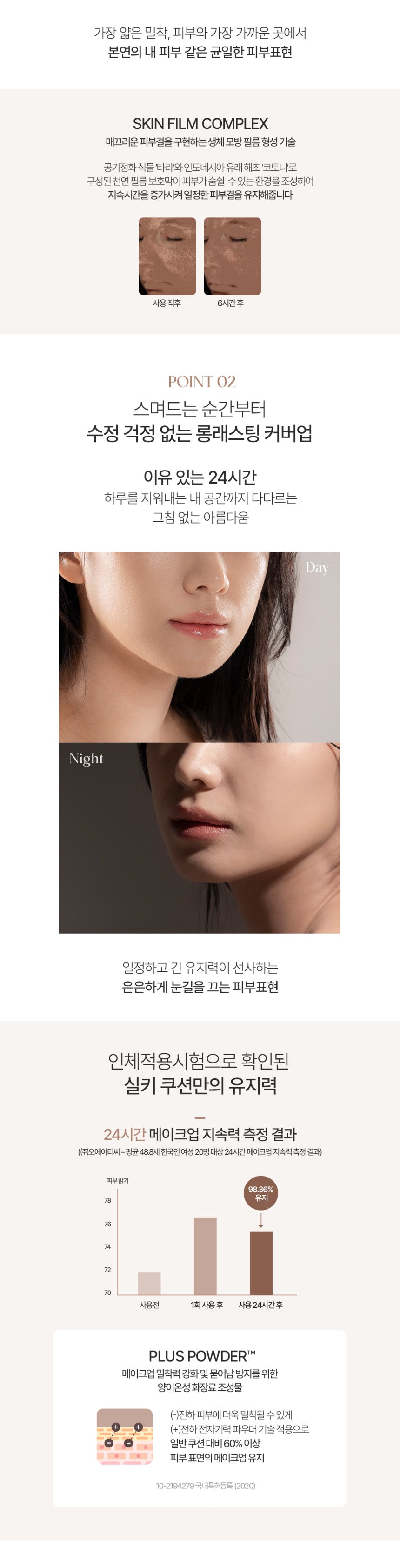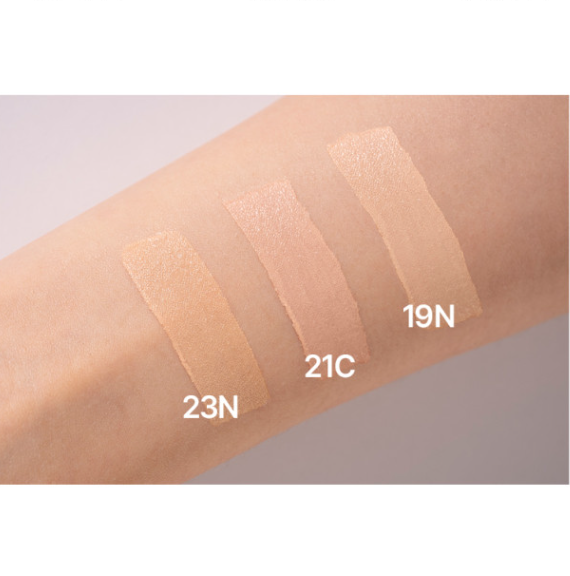 - PLUS POWDER™ Technology: A cationic composition that improves makeup adherence, prevents smudging, and ensures more than 60% longer-lasting wear compared to standard cushions.