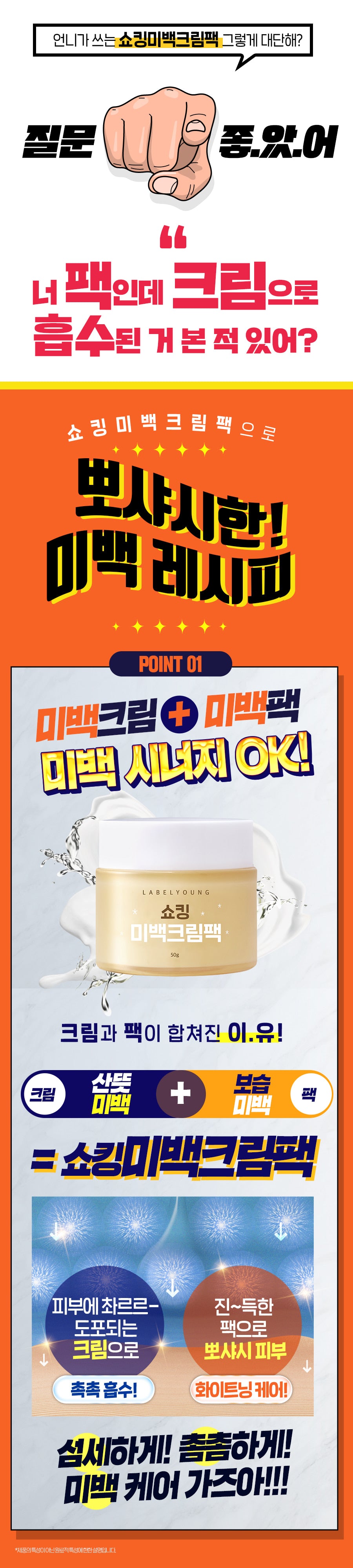 02. Refreshing whitening cream + high moisturizing whitening pack = whitening synergy UP!
