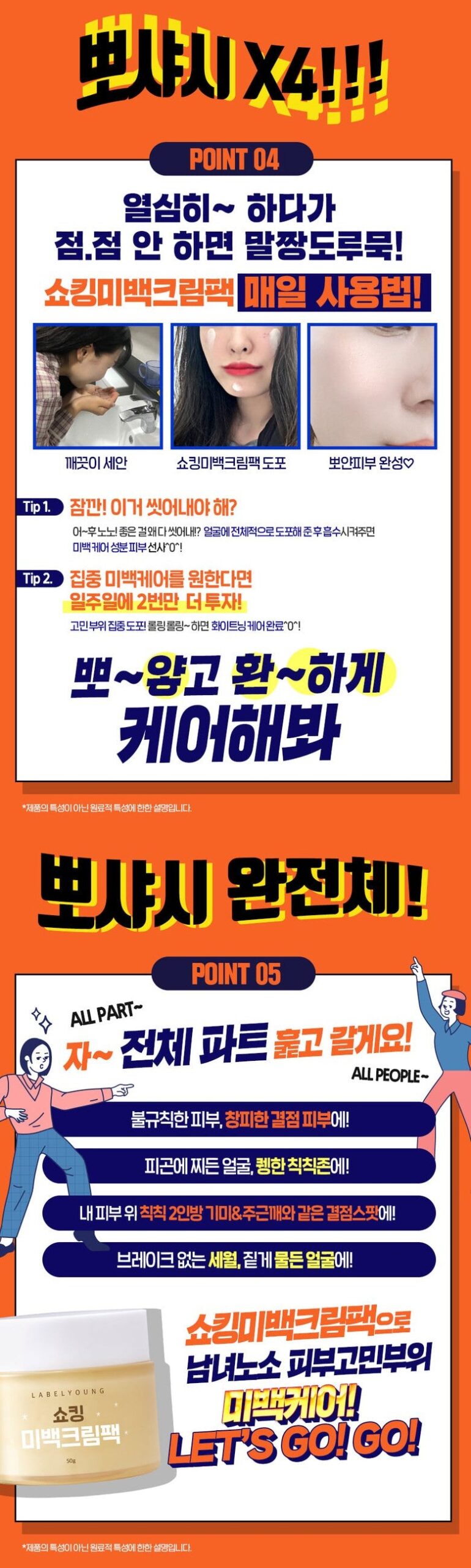 I’ve been using the Label Young Shocking Whitening Cream Pack for a few weeks now, and I’m genuinely impressed. The cream utilizes a unique mix of food ingredient whitening recipes along with patented ingredients that truly brighten my complexion. Unlike other products I’ve tried, this one is super convenient because there’s no need to wash it off – I can just apply it in the morning or evening and go about my day! Since starting this routine, I’ve noticed not only an improvement in clarity but also significant moisture retention without any greasy feel.