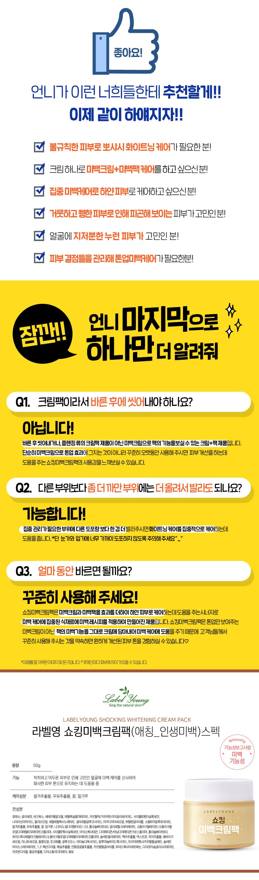 Whitening cream + Whitening pack, whitening synergy OK!