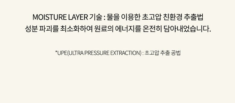 Thanks to the advanced MOISTURE LAYER Technology, using an eco-friendly ultra-pressure extraction (UPE) method, the natural energy of the ingredients is preserved for optimal skin benefits.