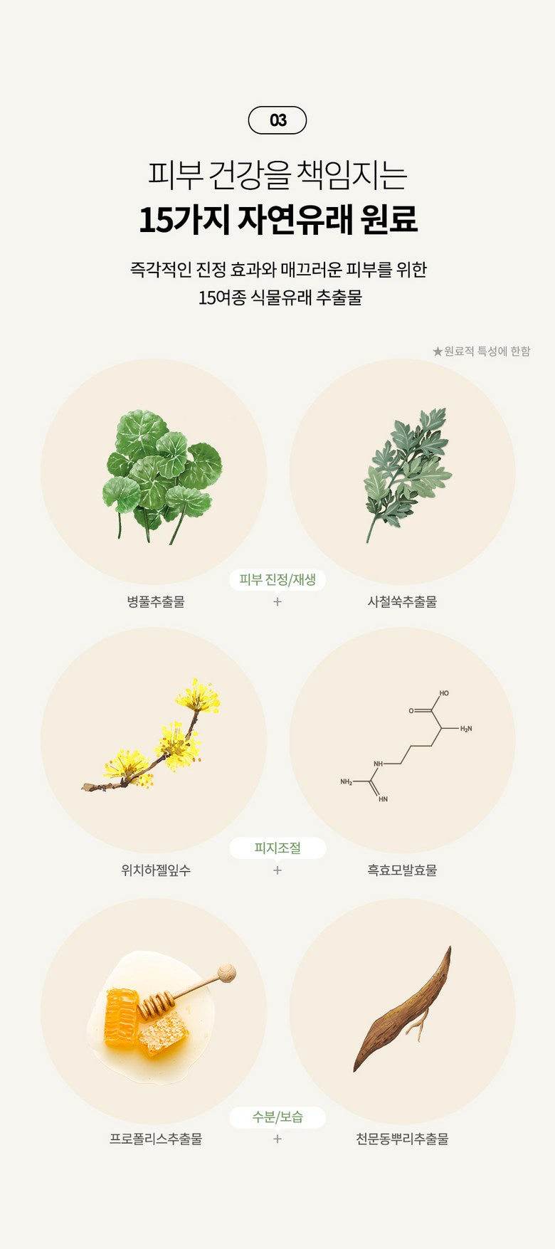 - Soothing & Regeneration: Centella Asiatica Extract, Mugwort Extract
