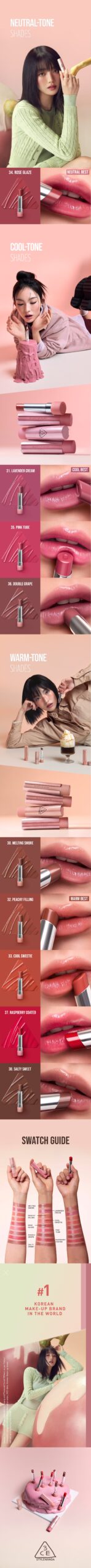 Experience a radiant, dewy glow with 3CE Glazed Lip Glow. This lightweight lip product delivers a sheer, healthy-looking flush with a smooth, non-sticky texture that comfortably adheres to your lips. Its glossy finish adds a subtle yet striking shine for a fresh, youthful appearance.