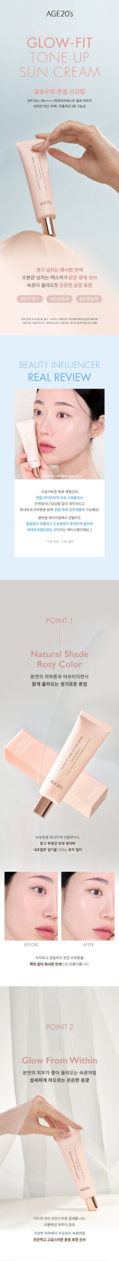 As a skincare enthusiast, I was truly impressed with AGE20’s Glow Fit Tone Up Sun Cream. This product offers an exceptional balance between sun protection and skin benefits, delivering SPF 50+ alongside PA++++ to shield against UVA/UVB rays. The lightweight texture is intriguing; it absorbs effortlessly without leaving that pesky greasy residue often associated with sunscreens. Moreover, its rosy tint harmonizes beautifully with my natural complexion—creating a subtle glow rather than a chalky finish. Beyond protecting from the sun, I’ve noticed enhanced radiance in my skin tone after consistent use; it’s almost as if this cream delivers on its promise of revitalizing both brightness and hydration! Truly, this formulation stands out for anyone looking to simplify their morning routine while ensuring proper skincare care.