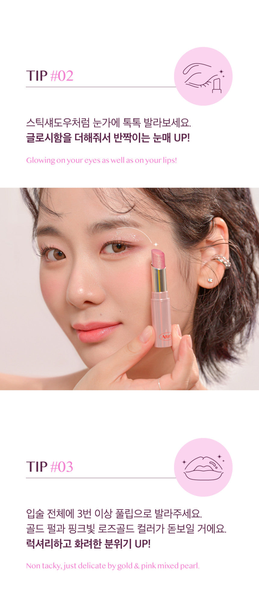 - Highlight your eyes by applying like a stick shadow—enhance your gaze with a glossy shimmer.