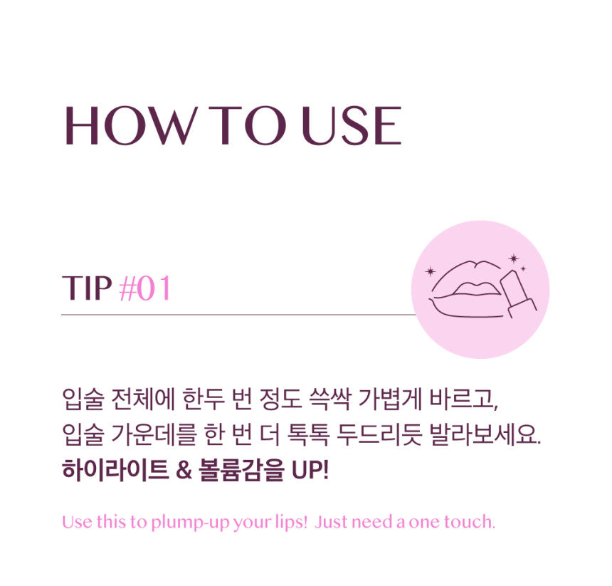 - Reapply to the center of your lips for an extra pop of volume and radiance.