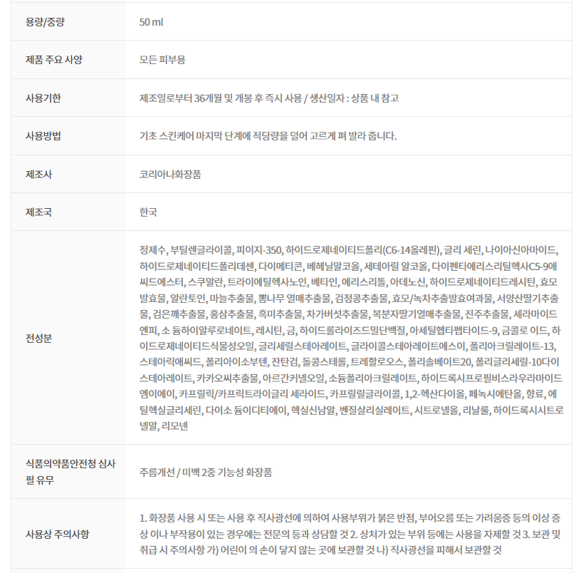 - Dual-functional formula for whitening and wrinkle care.