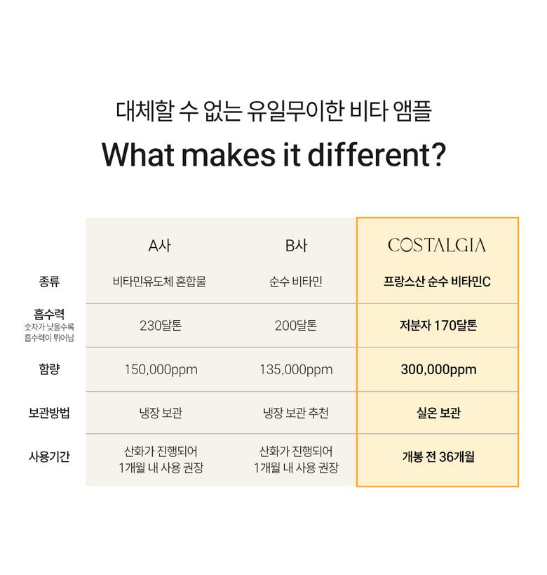 Developed using COSTALGIA’s patented moisture-free method, this product maintains: