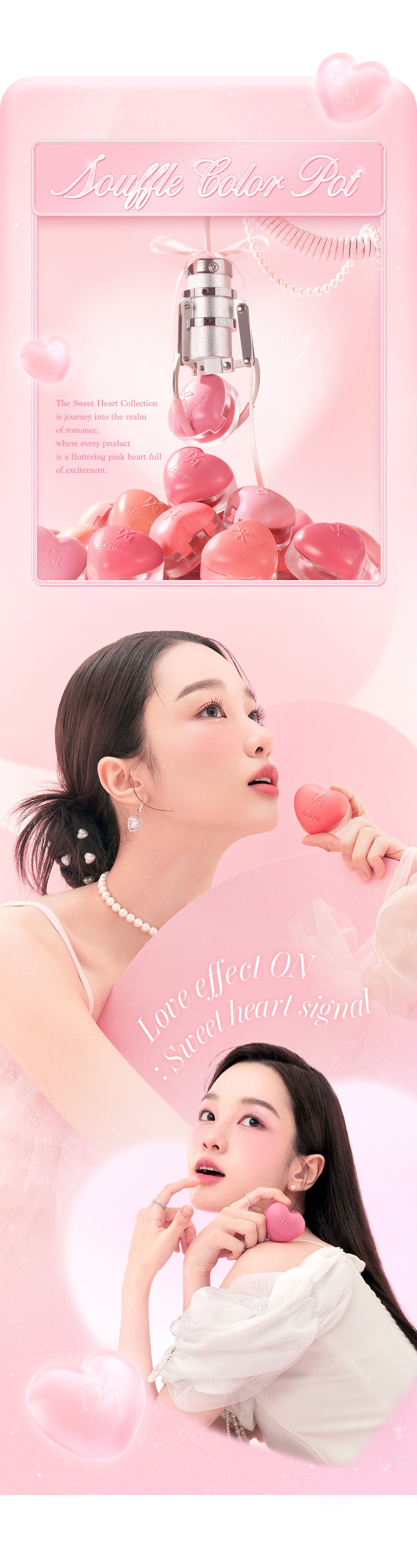 Experience the charming, airy beauty of dasique’s Souffle Color Pot from the Sweet Heart Collection, designed to add a romantic, rosy glow to your lips and cheeks. With 15 delicate shades in a soft, fluffy texture, this collection is ideal for creating a lovely, blushing look that lasts.