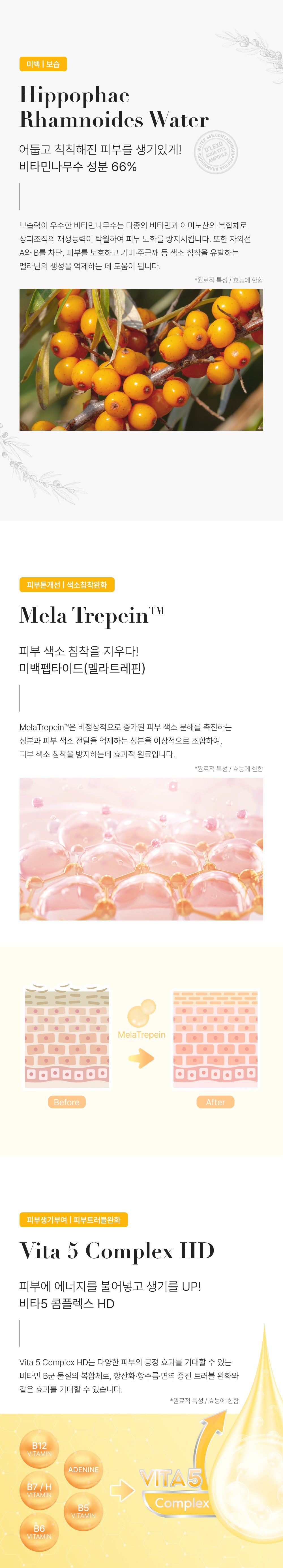Achieve radiant and youthful skin with a single ampoule. Its high content of Hippophae Rhamnoides Water improves skin tone, reduces dark spots, and enhances skin clarity.