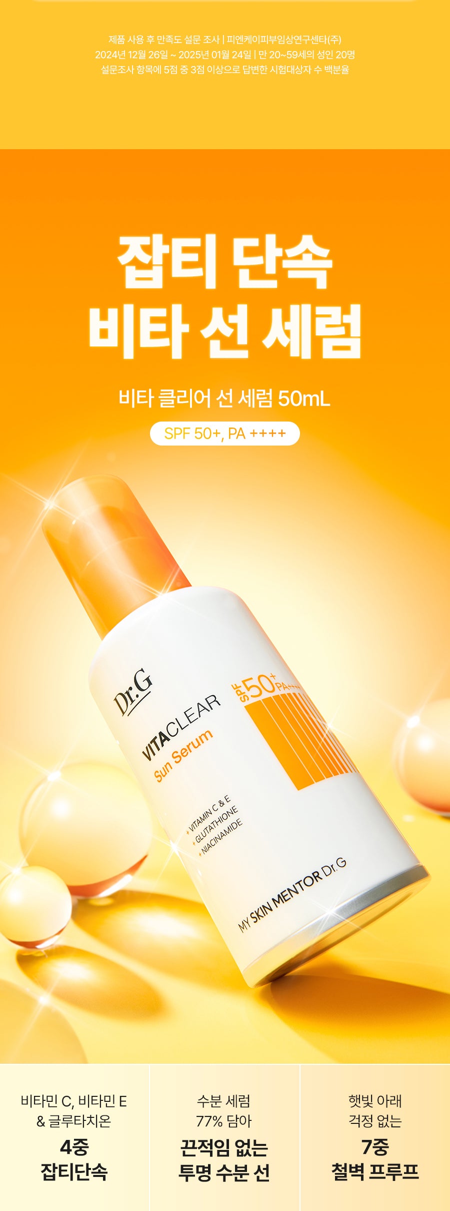 Experience the synergy of skincare and sun care with Dr.G Vita Clear Sun Serum—a lightweight, hydrating formula that glides on like a serum while delivering robust SPF50+ PA++++ UV protection. Ideal for sensitive skin, this innovative sun serum helps prevent and improve the appearance of blemishes, dark spots, and discoloration in just four weeks.