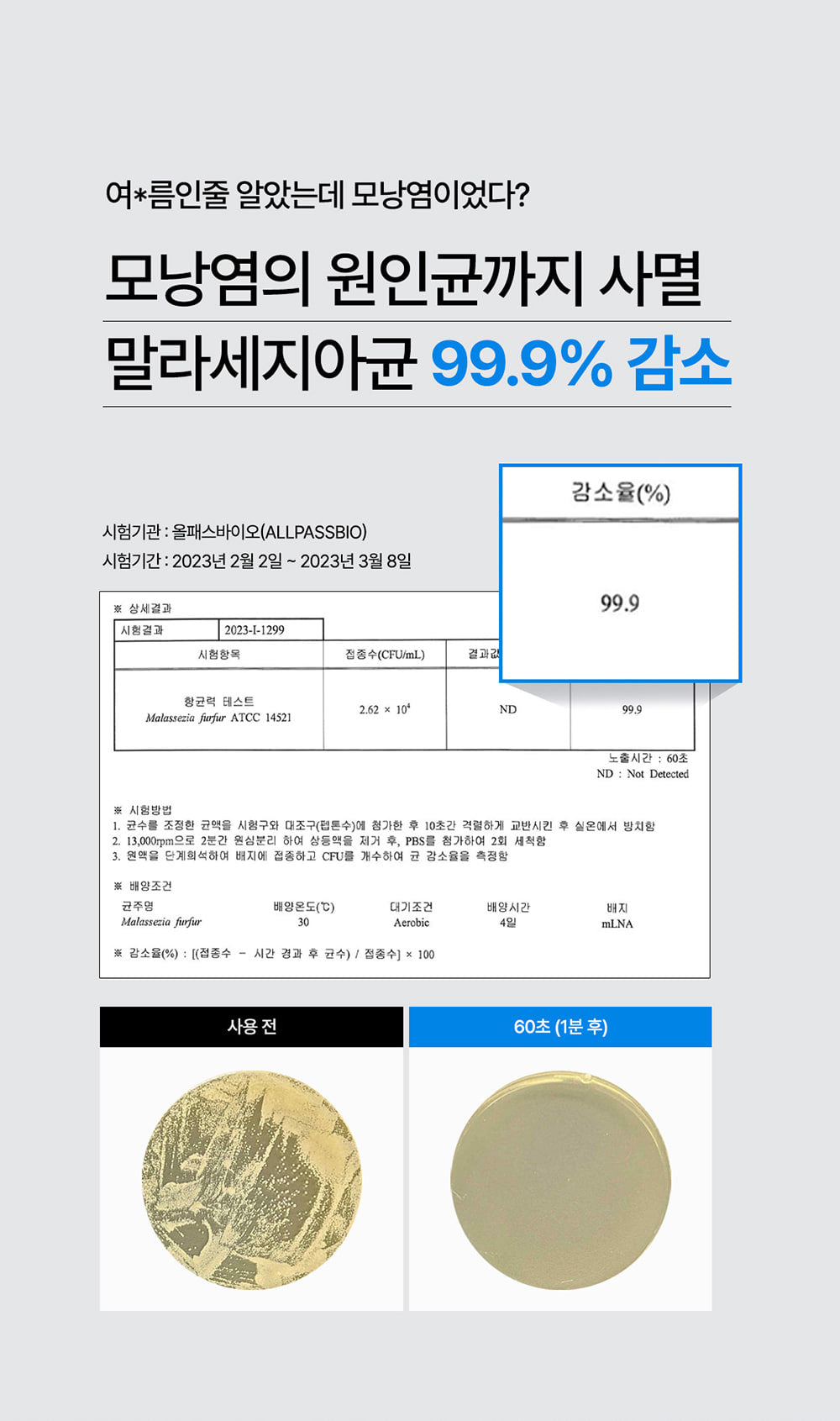 - 99.9% Reduction in Follicle Bacteria