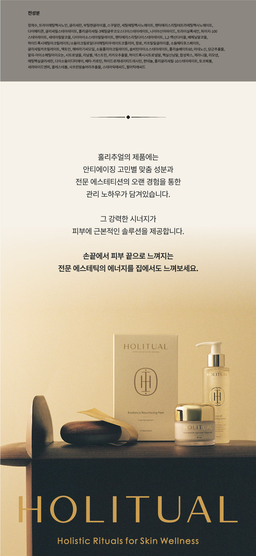 Sejak menggunakan HOLITUAL, wajahku menjadi jauh lebih lembap dan bercahaya. Dalam beberapa minggu saja, garis halus di dahi terlihat memudar! Seluruh koleksi makeup-ku juga tampak berbeda ketika kulit sudah siap ini.