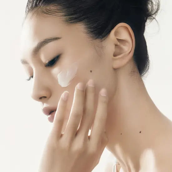 - Apply an appropriate amount to your cheeks, forehead, and chin.