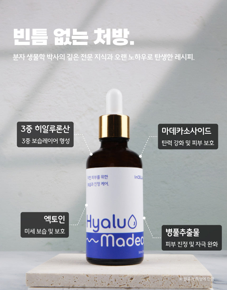 Elevate your skincare routine with Hyalu Madeca Serum, a premium cosmetic born from the innovative InCELLActiv™ Peptide Technology. This advanced formulation infuses vitality deep into your skin, delivering unparalleled hydration and soothing care.