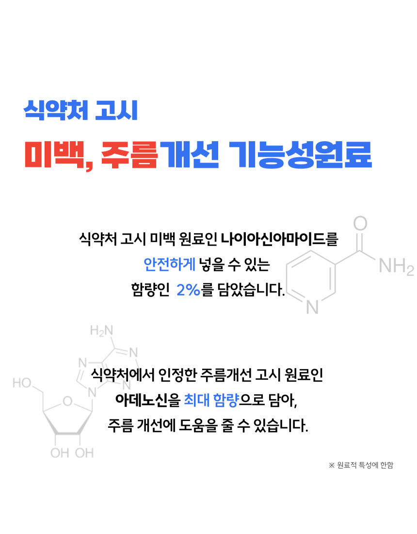 - Whitening & Anti-Wrinkle Properties: Niacinamide (2%) and adenosine work synergistically to brighten skin tone and reduce wrinkles.