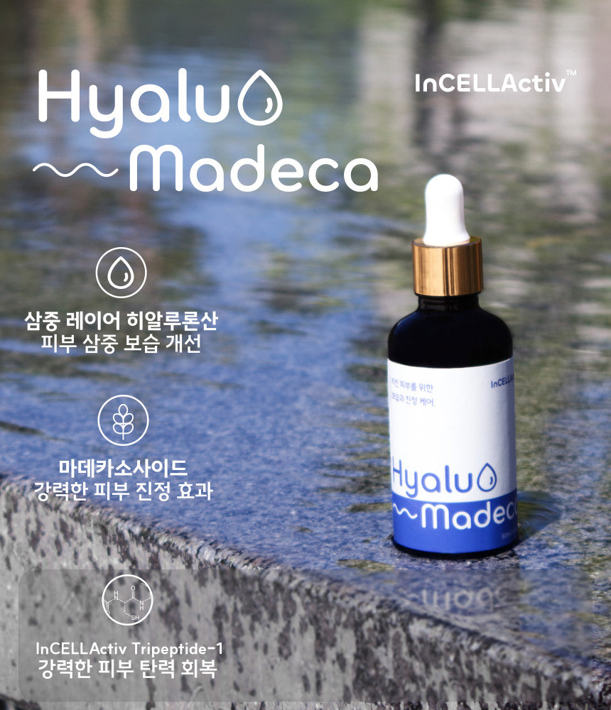 Elevate your skincare routine with Hyalu Madeca Serum, a premium cosmetic born from the innovative InCELLActiv™ Peptide Technology. This advanced formulation infuses vitality deep into your skin, delivering unparalleled hydration and soothing care.