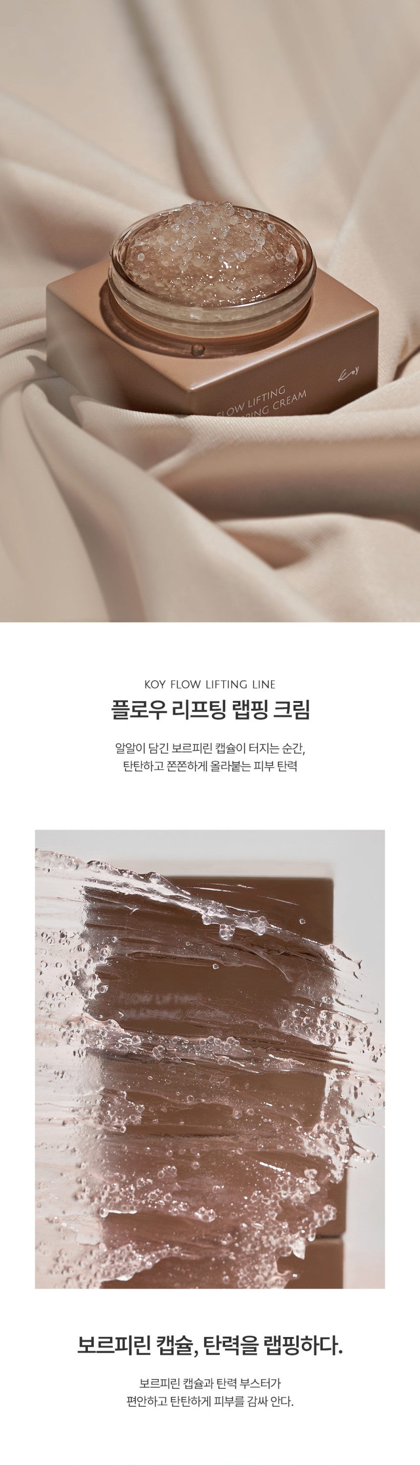 Using the koy Flow Lifting Wrapping Elasticity Cream has been a game-changer for my skincare routine. The Borphyrin Capsules provide a noticeable lifting effect almost immediately upon application. I appreciate how the patented membrane-free formulation allows for seamless absorption without leaving any sticky residue behind. After just a few weeks, I’ve observed improved skin elasticity and fewer fine lines around my cheeks and jawline. The unique wrapping cream texture is delightful, creating an instantly rejuvenating feel on my skin that lasts throughout the day.