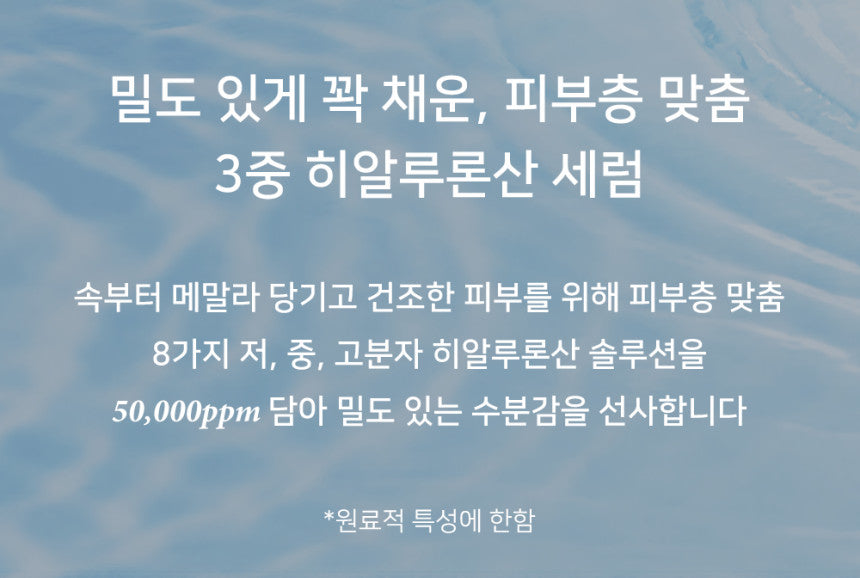 Infused with 50,000ppm of Hyaluronic Acid, this serum contains low, medium, and high molecular weight hyaluronic acid to provide multi-layer hydration: