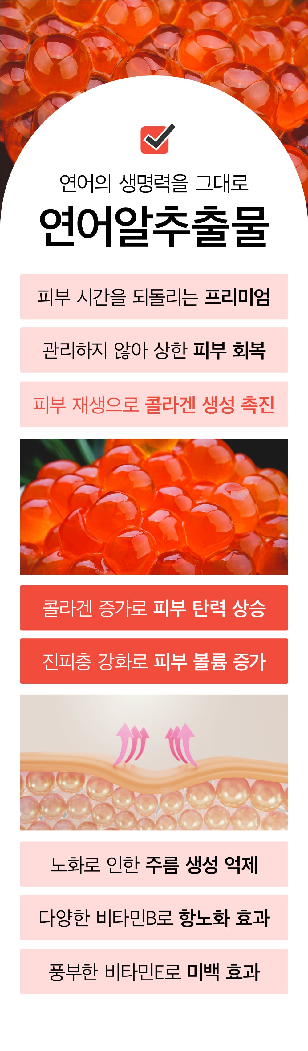- Salmon Roe Extract → Stimulates collagen production & enhances skin volume
