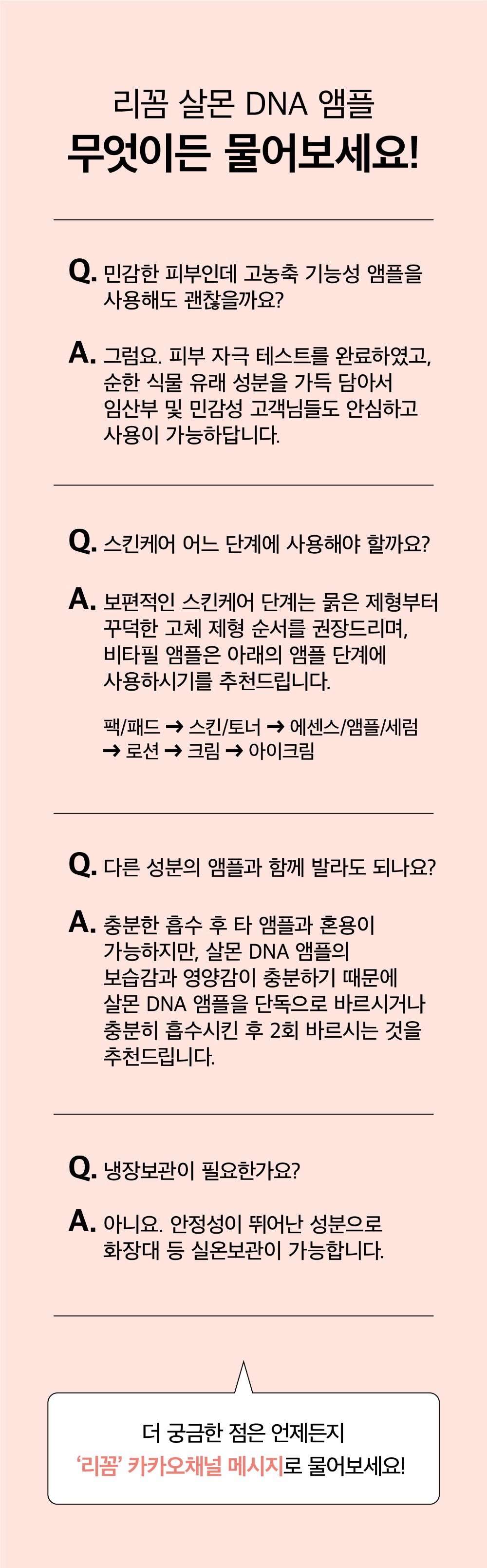 Mask/Pad → Toner → Ampoule (Licorne Salmon DNA Ampoule) → Cream → Eye Cream