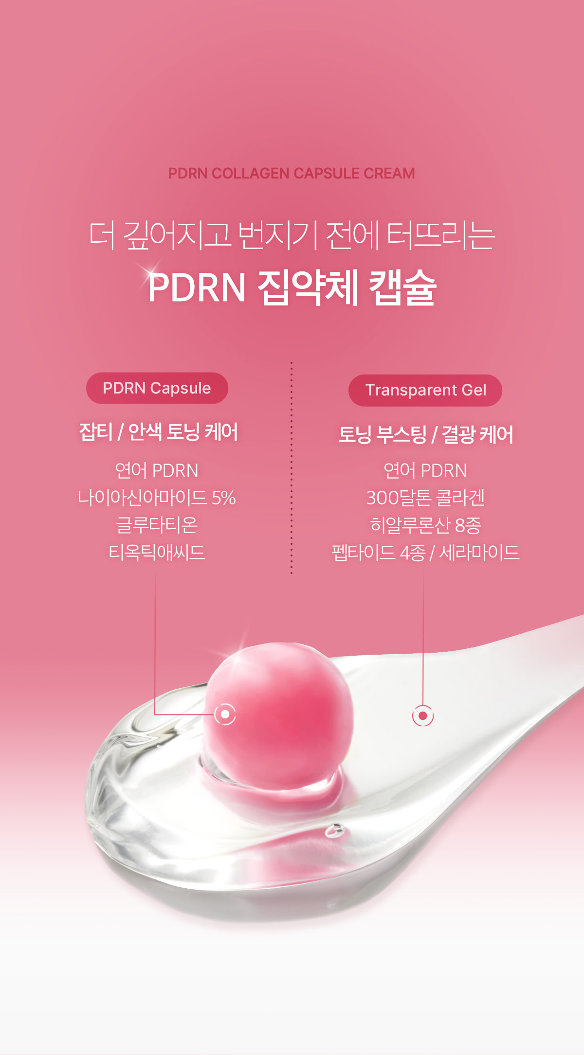 Each pink capsule encapsulates key ingredients to deliver intensive care the moment it touches the skin.