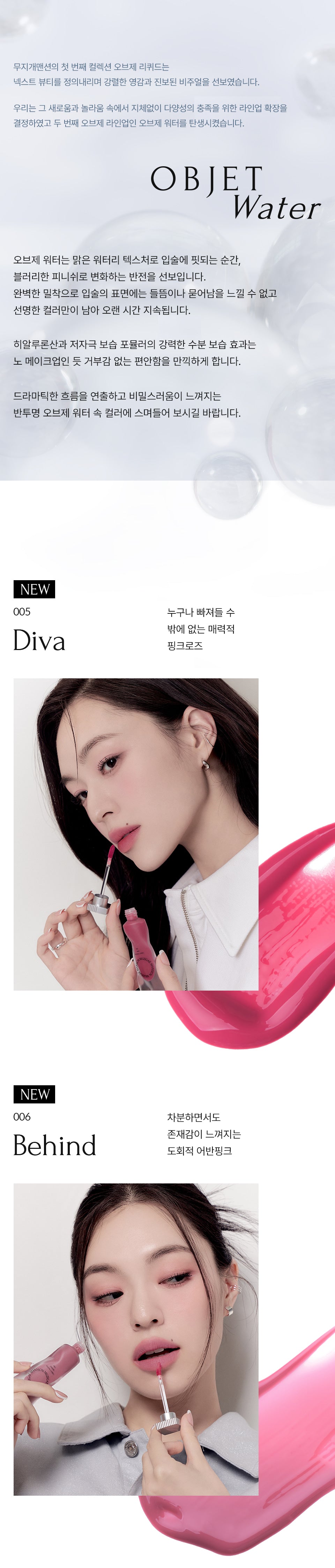 Immerse yourself in the world of color with OBJET Water, a translucent cosmetic masterpiece that creates an enigmatic and fluid visual impact.