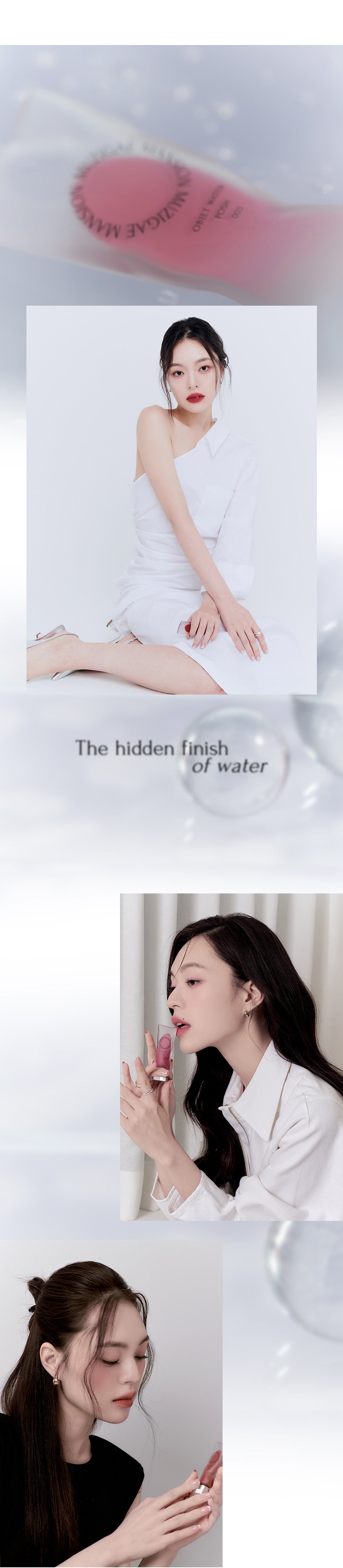 Experience our unique reverse water blur formula, transforming from watery to blurry, perfectly complementing your lips.