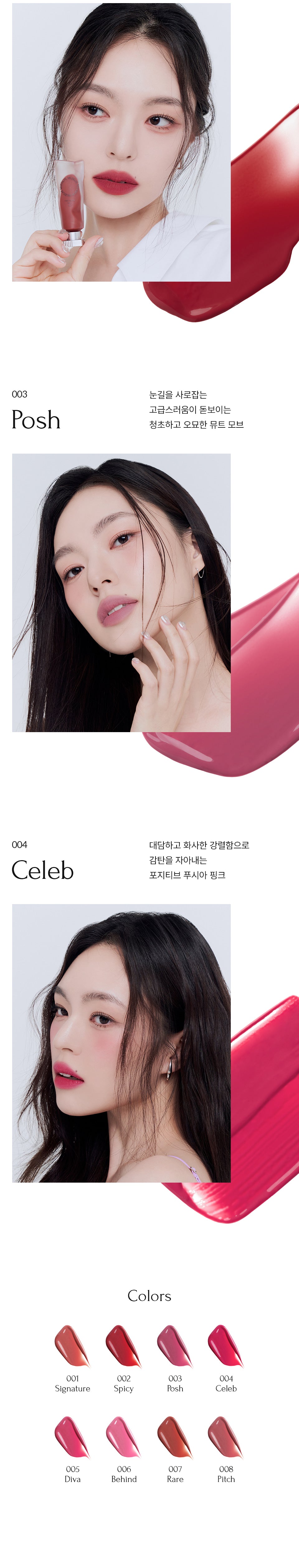 Experience our unique reverse water blur formula, transforming from watery to blurry, perfectly complementing your lips.