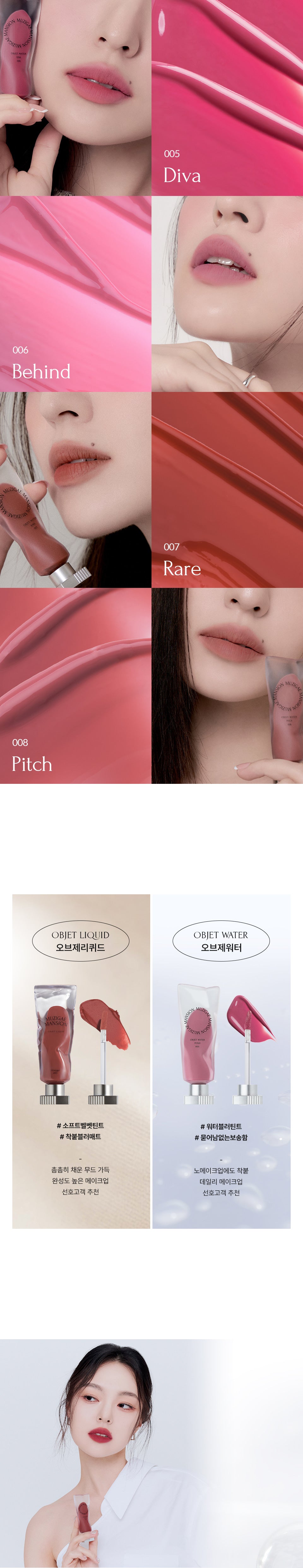 OBJET Water is renowned for its crystal-clear, watery texture that seamlessly morphs into a soft, blurred finish upon contact with your lips. This unique formula ensures a feather-light feel, free from flaking or staining, leaving behind nothing but vibrant, long-lasting color.