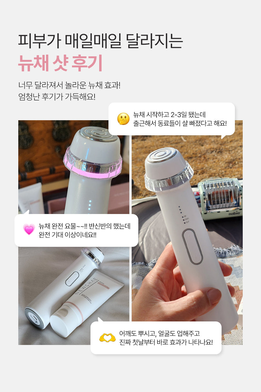Oh, this Newchae beauty device is like magic for my skin! Each use feels rejuvenating; I can’t help but smile at how radiant and alive it looks. Perfect addition to my skincare ritual!