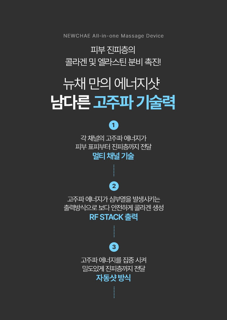 - Safe RF STACK output method generates deep heat with high-frequency energy.