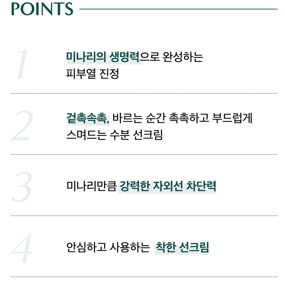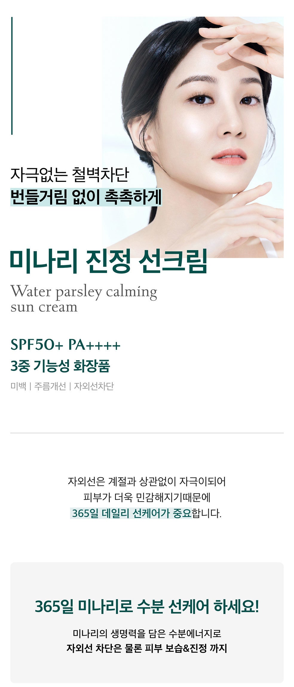 Water parsley, moisture and calming ingredients grown healthy in Suncheon Bay, a clean area in Korea where the warm sea breeze and clear water flow, replenish sensitive skin.