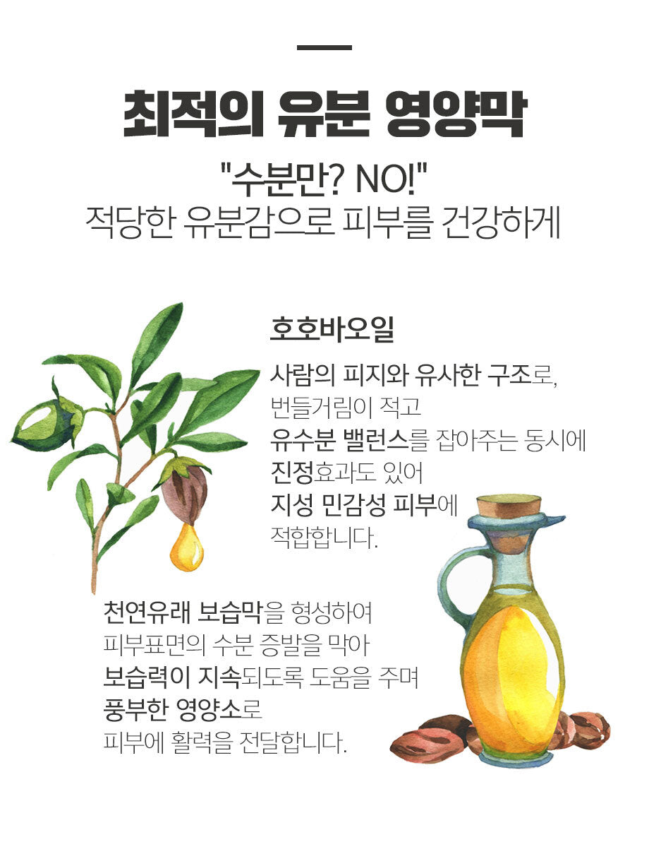 - Jojoba Oil: Balances oil and moisture, provides soothing effects, enhances skin vitality, and offers lasting hydration.