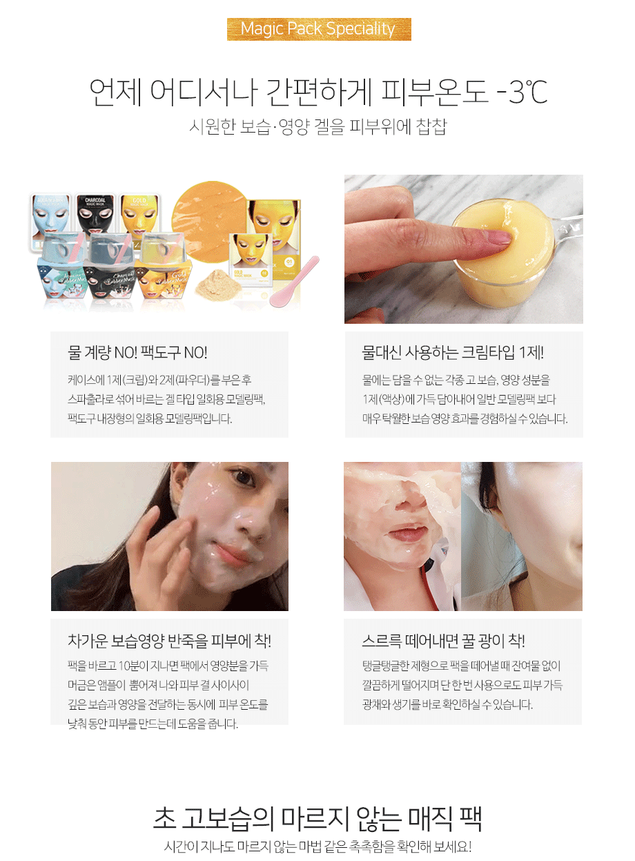 Achieve superior aesthetic care with ease. The pack’s design allows for a swift cooling effect, reducing skin temperature by up to 3℃. With no need for water measurement or additional tools, this disposable gel-type pack is a blend of two agents – a cream and a powder, mixed directly in its case using a provided spatula.