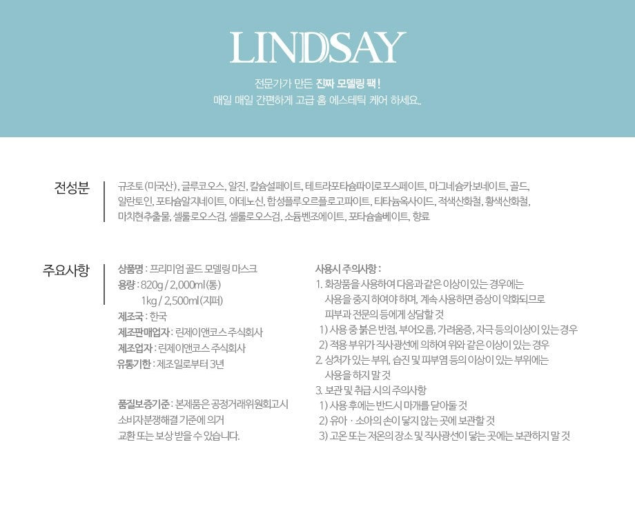 The LINDSAY Premium Gold Modeling Pack has been a game-changer for my skincare routine. The gold infusion truly enhances elasticity, making my skin feel firmer after just a few uses. I was particularly impressed by how well the adenosine component helps maintain youthful skin; it gives my complexion that radiant glow I’ve been seeking. Additionally, the soothing effects of allantoin and purslane extract have left my sensitive skin calm and hydrated, with no irritation whatsoever. Highly recommend it if you’re looking to boost your skin’s texture and overall appearance!